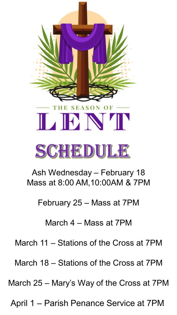 Next Wednesday is Ash Wednesday, the start of the season of Lent. It is a time to deepen our relationship with Jesus Christ and ask for his special presence on our spiritual journey. I invite you to join out Lenten devotions and reflections during the Lenten season.